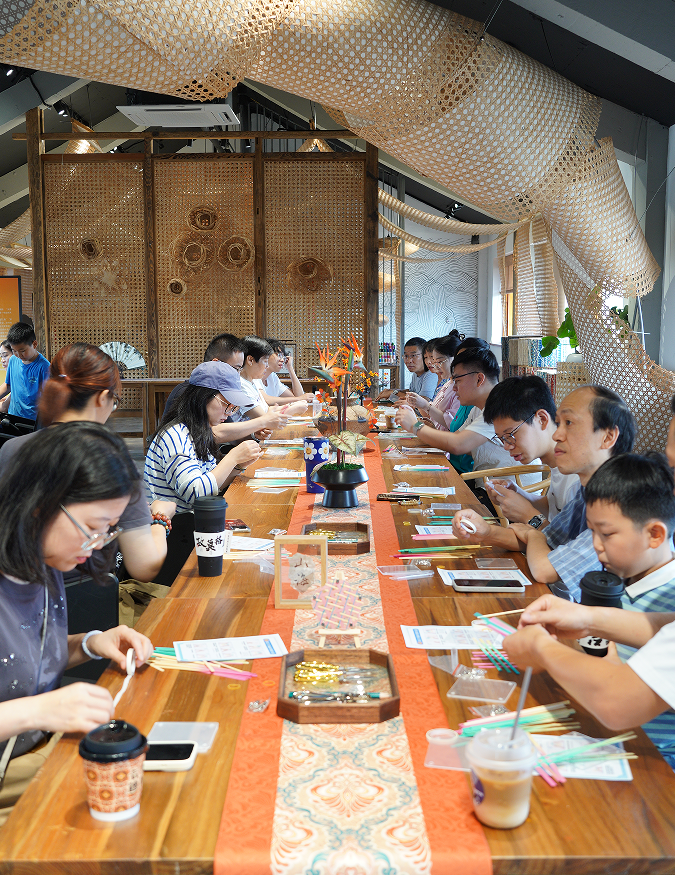 在竹編杯墊手作體驗(yàn)環(huán)節(jié),現(xiàn)場氣氛熱烈非凡。會員們圍坐在一起,面前擺放著竹篾、剪刀等工具,老師耐心講解、親手示范,大家認(rèn)真學(xué)習(xí),眼睛緊盯著老師的動作,手中的竹篾在指尖穿梭,遇到困難時(shí),大家相互交流、互相請教,經(jīng)過一番努力,一個(gè)個(gè)獨(dú)具創(chuàng)意的竹編杯墊逐漸成型,有的古樸質(zhì)感、有的編織成獨(dú)特紋理,展現(xiàn)出了會員們的創(chuàng)新思維。圍爐冰茶是夏天的特色項(xiàng)目,大家一邊品嘗著大涼山酸奶,搭配精致茶點(diǎn)和水果,一邊分享工作生活中的趣事。